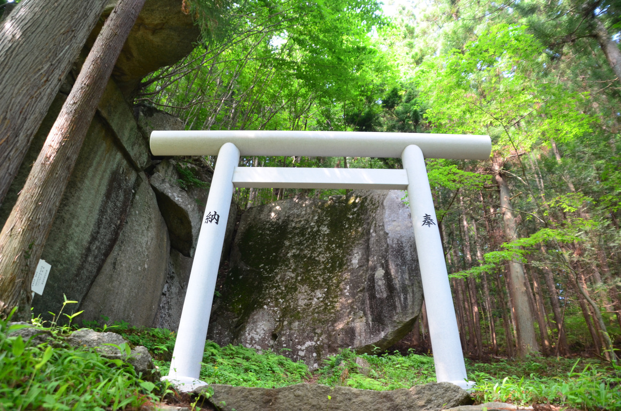 間近で見上げる高さ5~6メートルの大岩は圧巻。