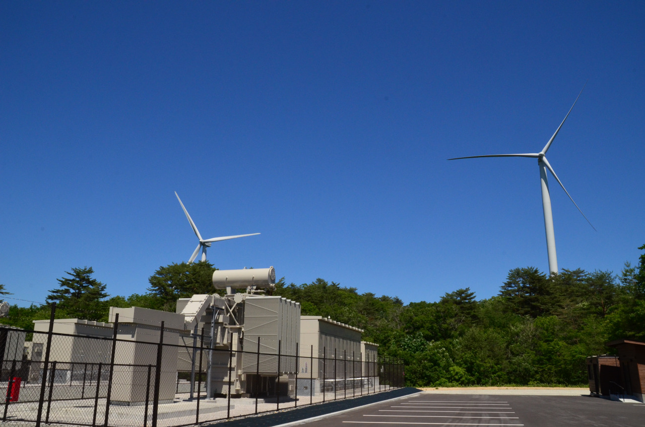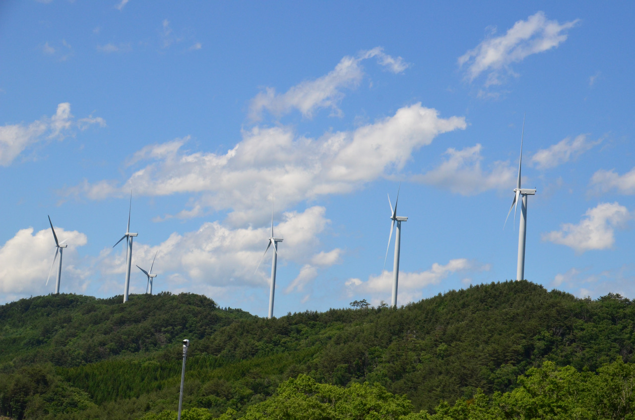 直径が約100mもあるブレード(羽)が風を受けて悠々と回る姿は、圧倒的なスケール感。