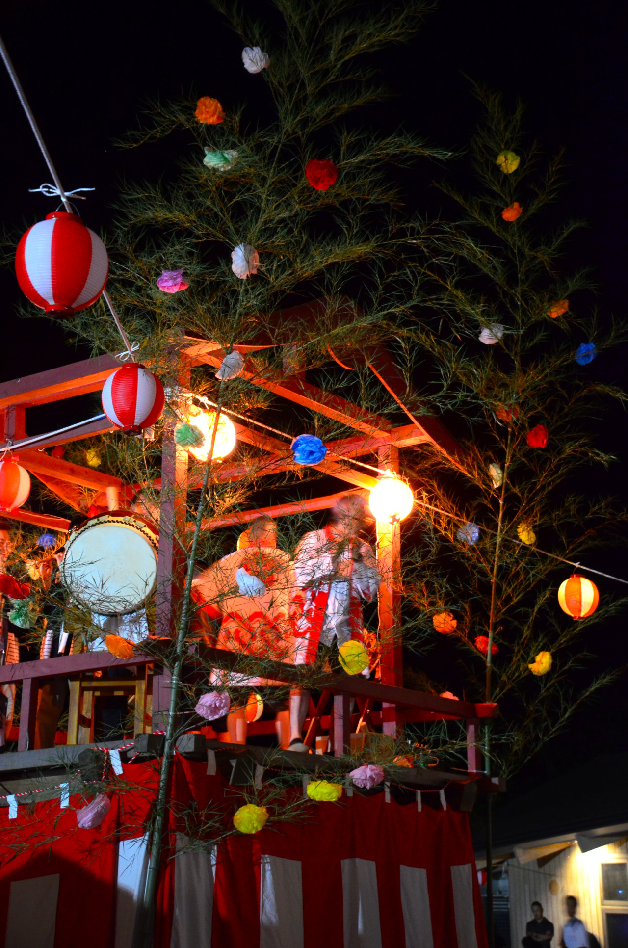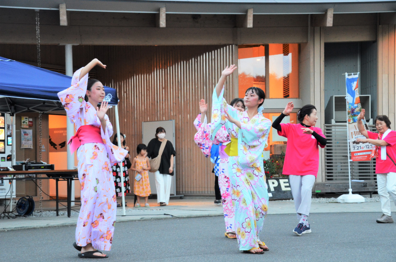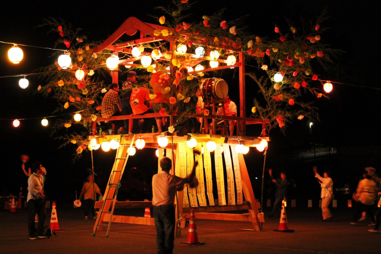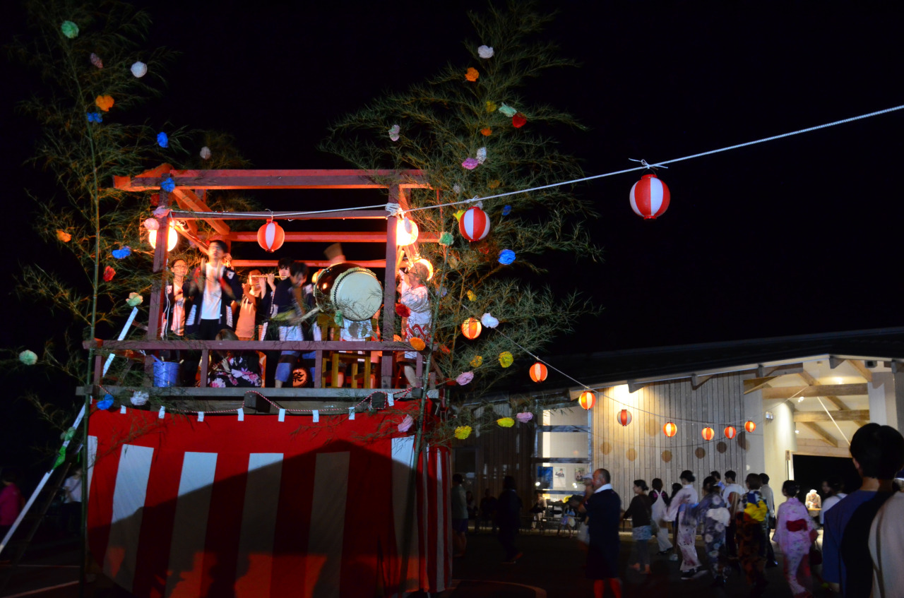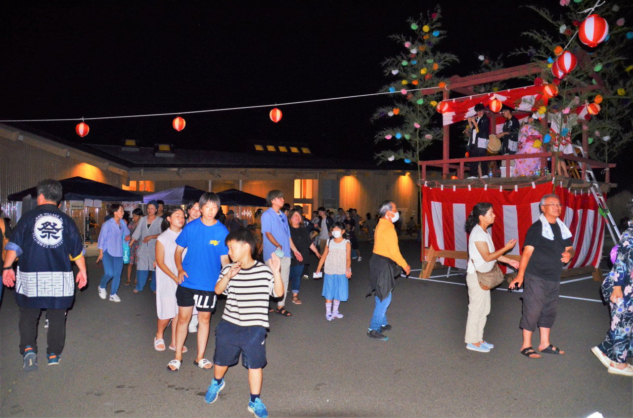 毎年「復興交流館あぜりあ」の駐車場に大きなやぐらが組まれ、数々の提灯が灯されると会場は一気にお祭りの雰囲気に。