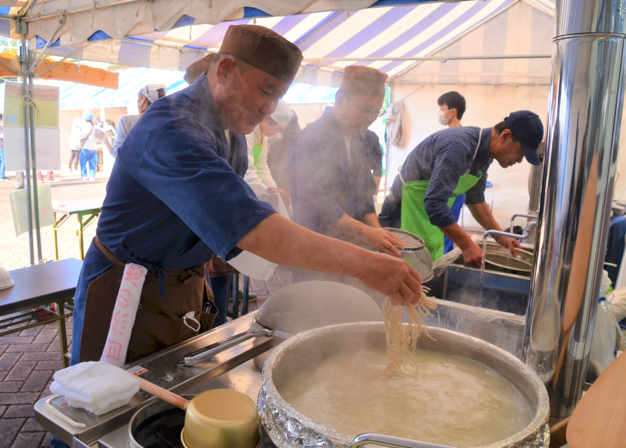 香り豊かな手打ちの新そばがふるまわれるなど、飲食・物販コーナーが立ち並び、食欲の秋を満喫できます。
