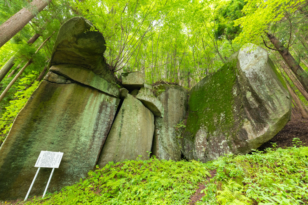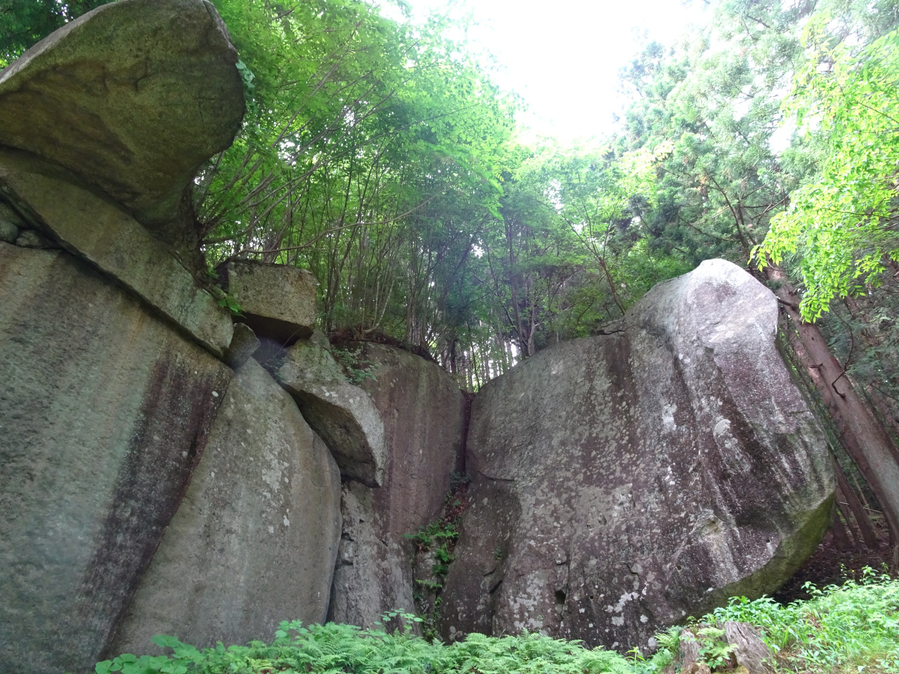 間近で見上げる高さ5~6メートルの大岩は圧巻。